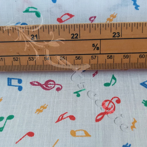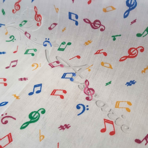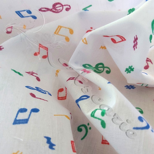 Coloured Musical Notes on a white Background, this is a versatile polycotton fabric. Perfect for children's wear, tops, Skirts, decorations, patchwork costumes, crafts, bed sheets, pillow cases, tablecloths, napkins and many other uses......